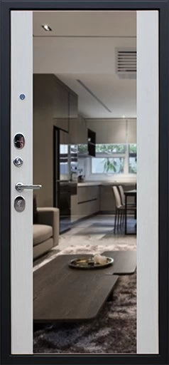 Надежная входная Дверь Вектор с зеркалом премиум класса по цене 49 221 руб. Большая толщина стали защитит от проникновения в ваш дом, квартиру или коттедж. Используется очень качественная фурнитура: замки, цилиндры, ручки, защелки. Покрытие и отделка двери изготовлено под внимательным контролем производителя. Дверь имеет долгий срок службы и гарантию.